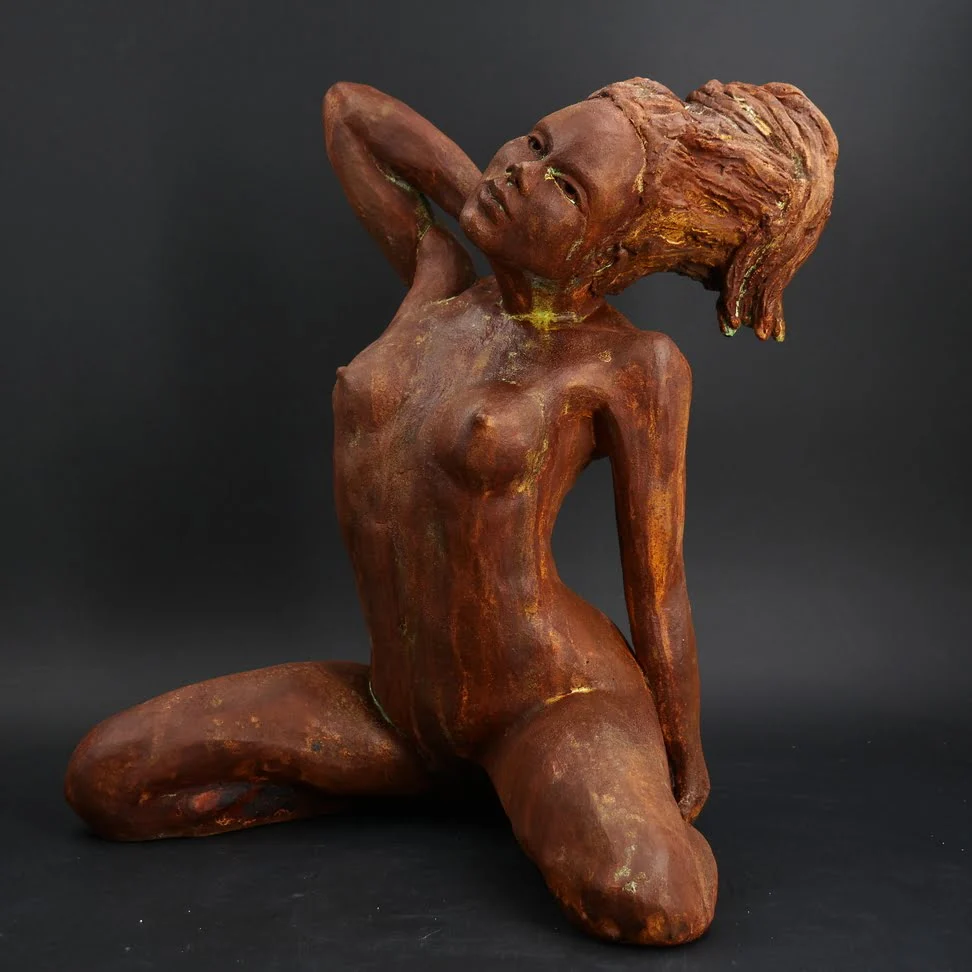 Michaël Ezanno a commencé par travailler la sculpture sur bois, puis sur pierre avant que l’argile, en particulier le grès, ne devienne son matériau de prédilection.